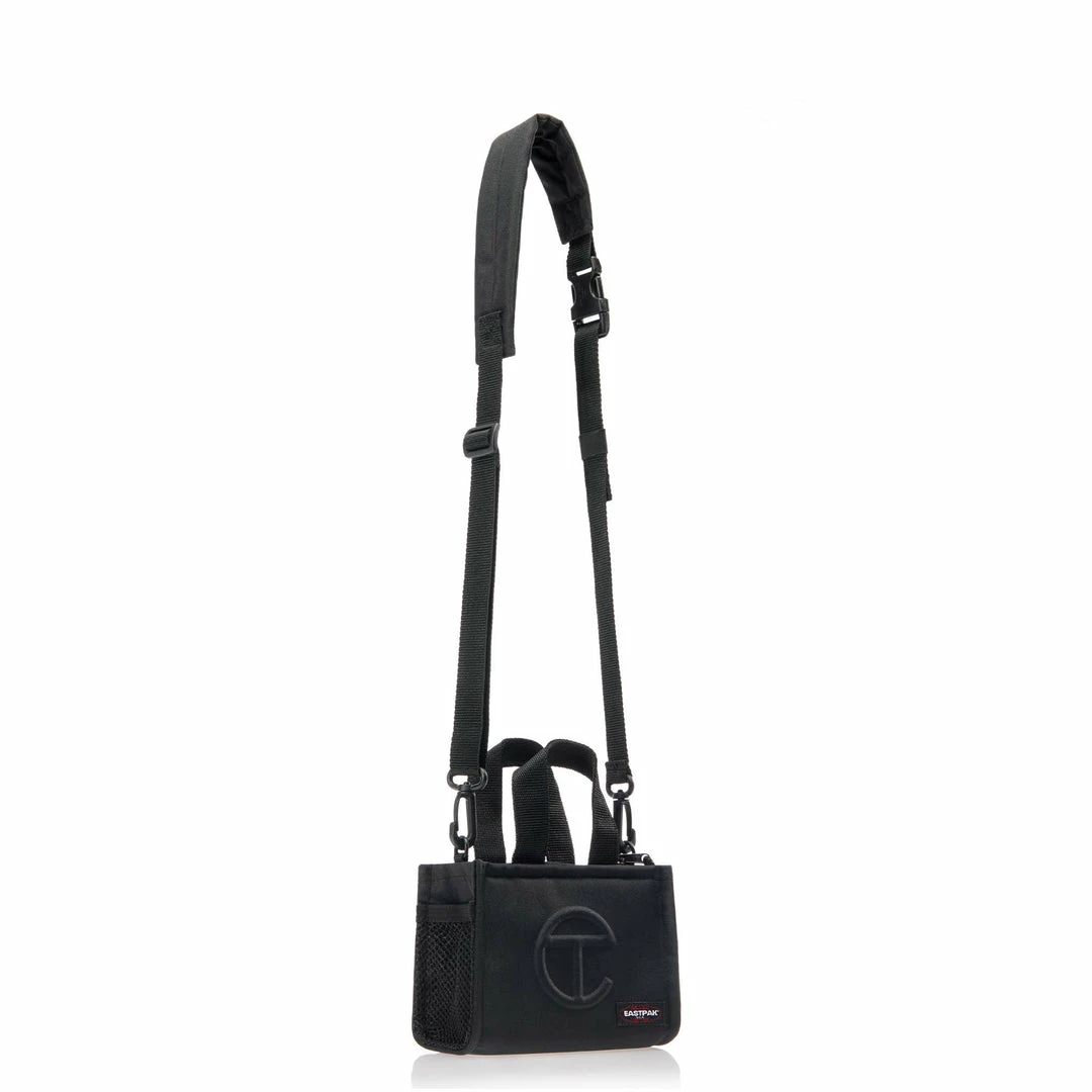The iconic Small Shopper in tacticalΒ canvas with woven hand straps and removable/adjustable padded shoulder strap to be worn crossbody, around the waist or over the shoulder. Exterior features embossed Telfar logo, top zipper closure, and side mesh pockets, interior has velcro inner compartments.
