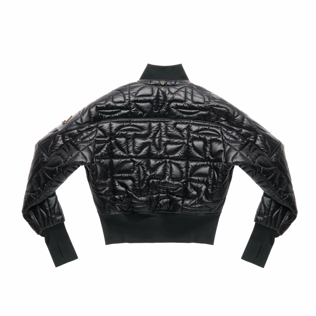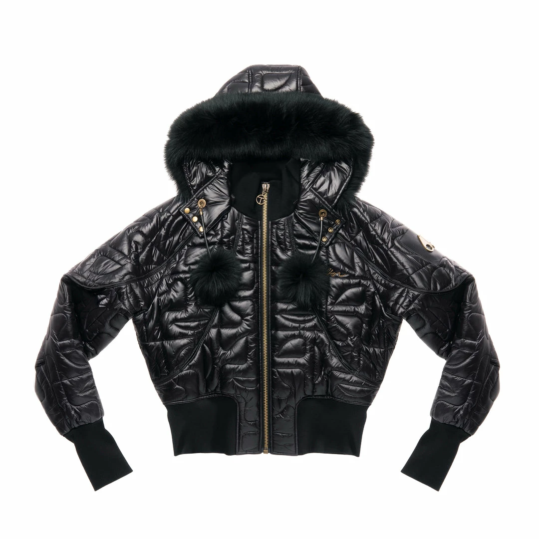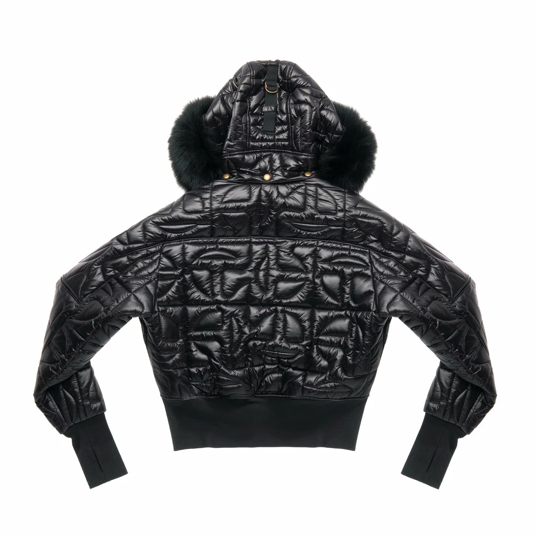 Telfar’s take on Moose Knuckles’ iconic ballistic bomber jacket. Featuring a cropped body, extra long sleeves with thumbhole cuffs, detachable fur trimmed hood and our signature all-over monogram pattern quilted into shiny puff.