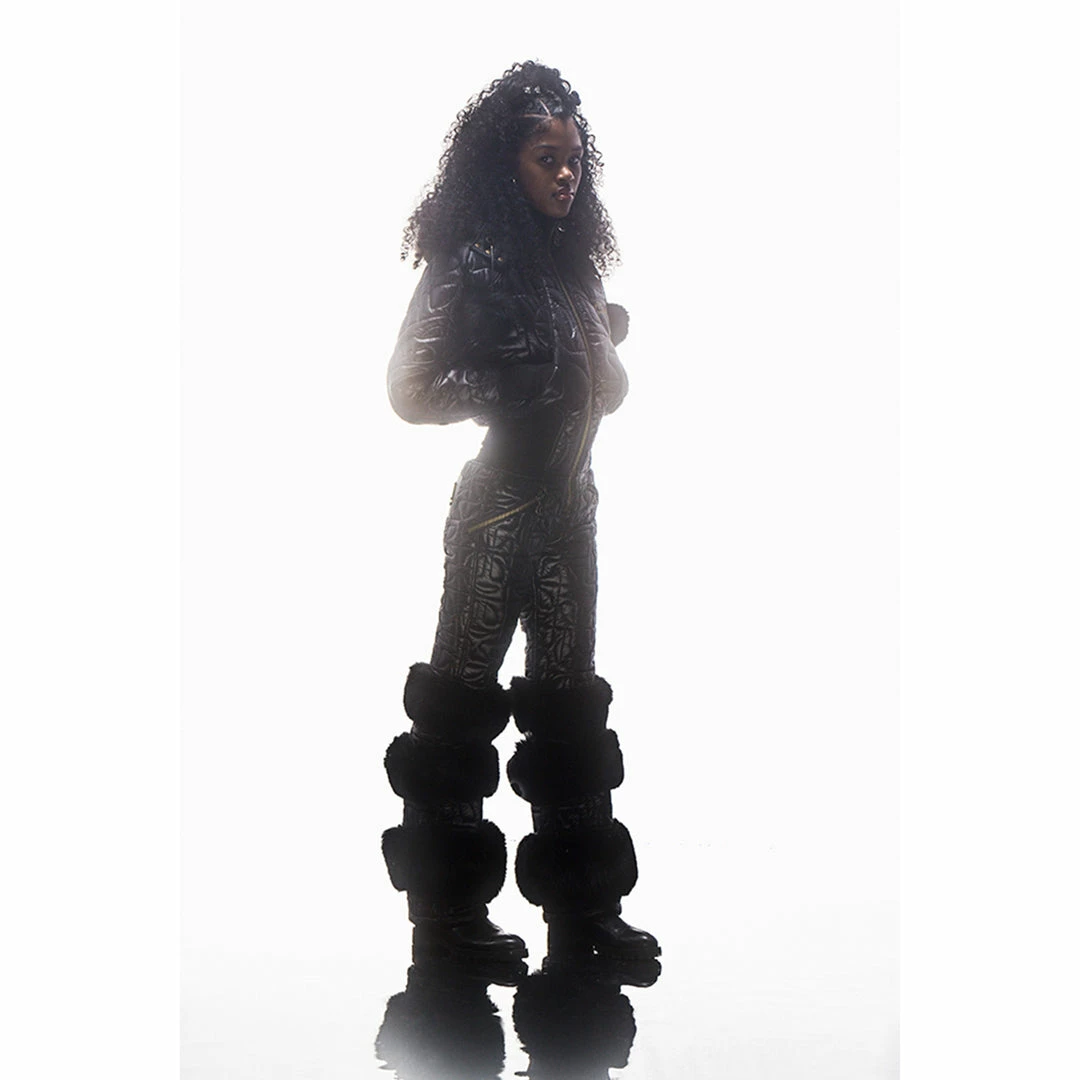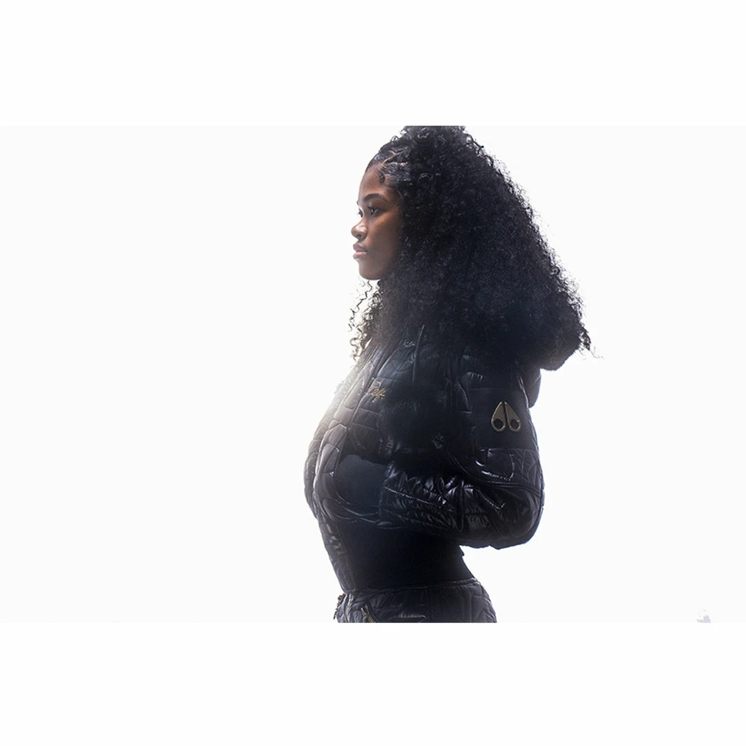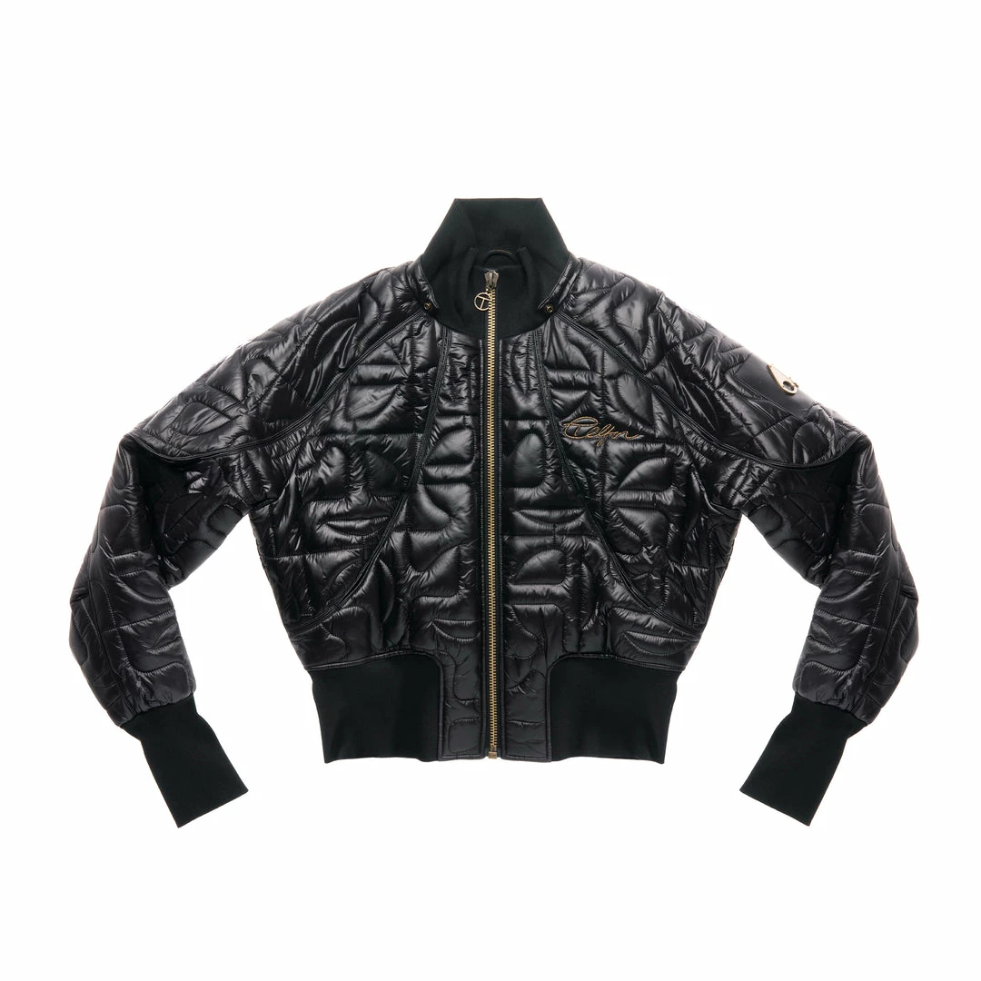 Telfar’s take on Moose Knuckles’ iconic ballistic bomber jacket. Featuring a cropped body, extra long sleeves with thumbhole cuffs, detachable fur trimmed hood and our signature all-over monogram pattern quilted into shiny puff.