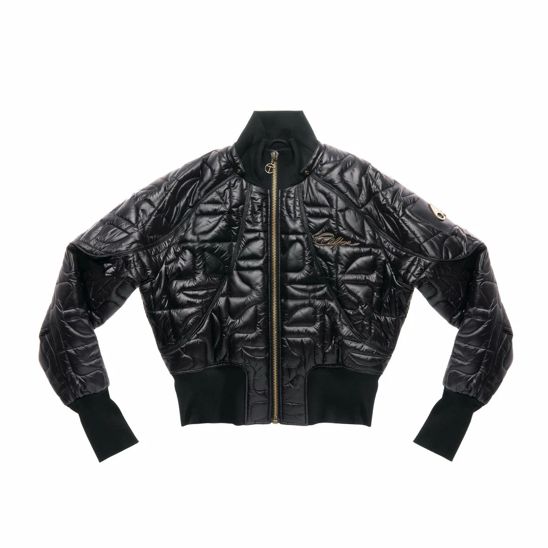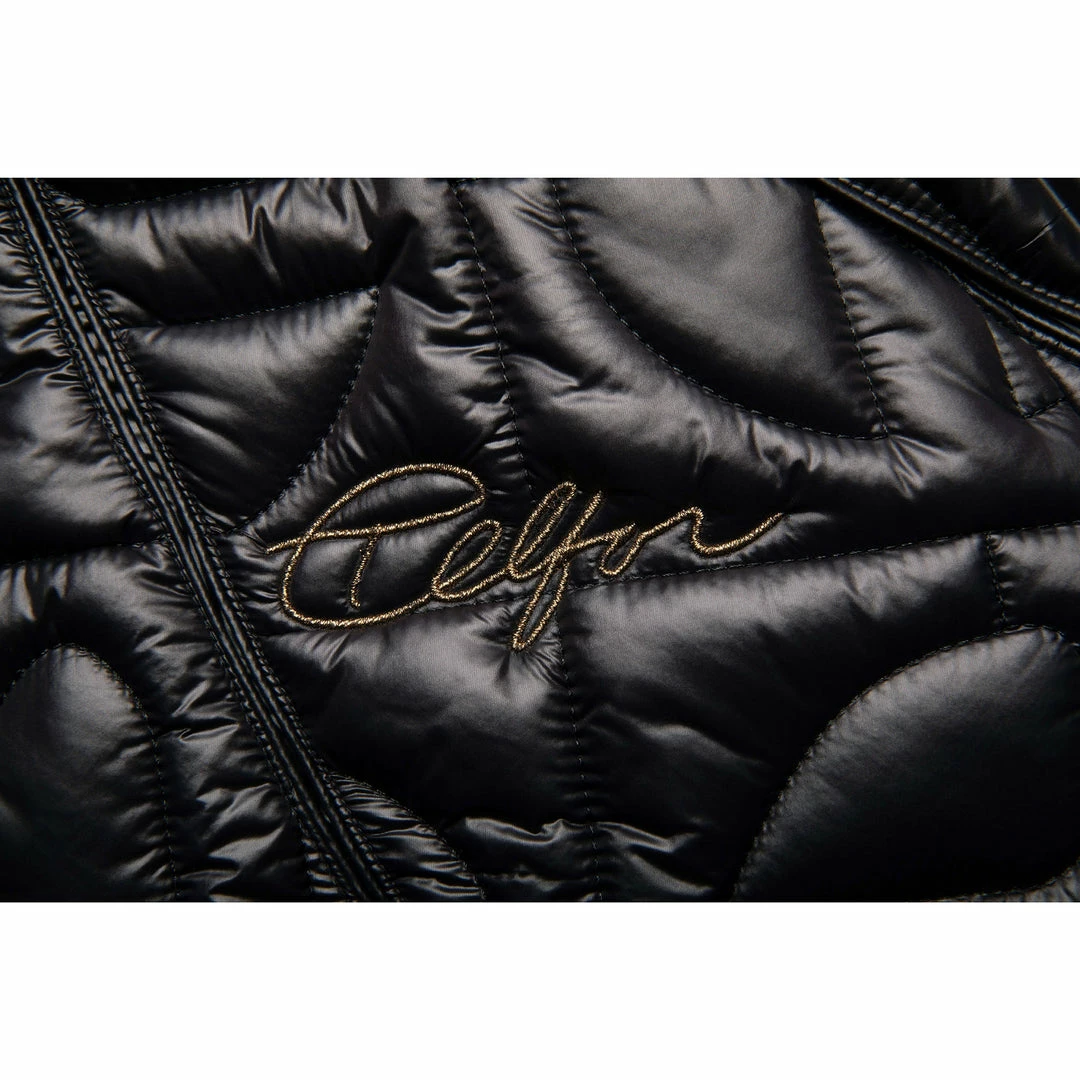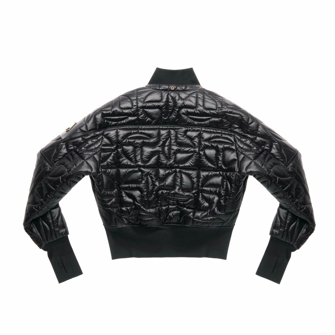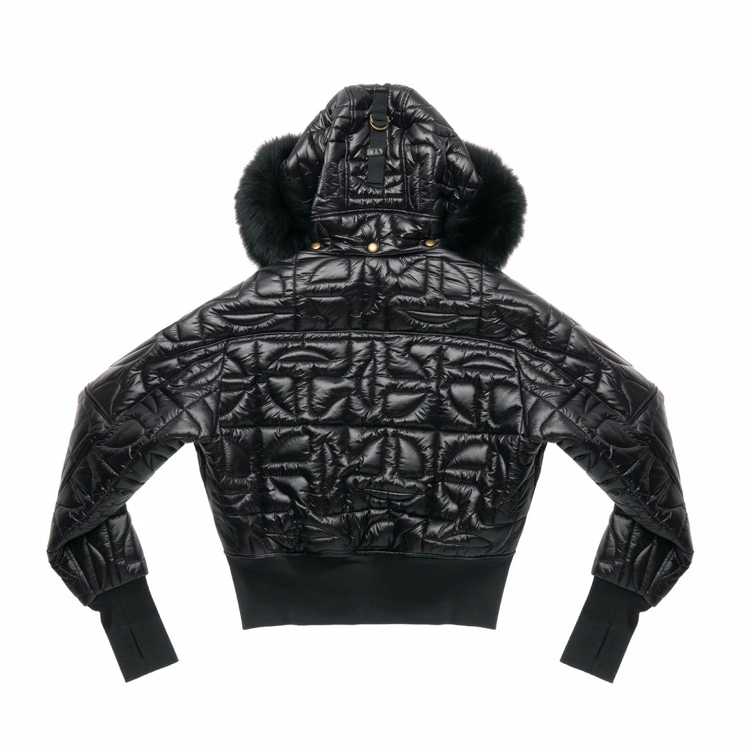 Telfar’s take on Moose Knuckles’ iconic ballistic bomber jacket. Featuring a cropped body, extra long sleeves with thumbhole cuffs, detachable fur trimmed hood and our signature all-over monogram pattern quilted into shiny nylon puff.