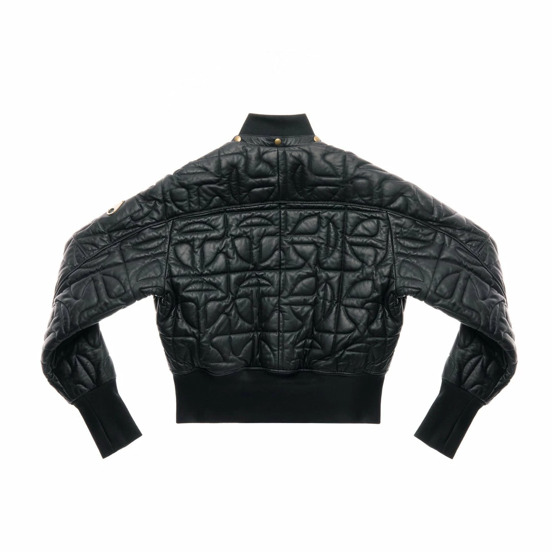 Telfar’s take on Moose Knuckles’ iconic ballistic bomber jacket. Featuring a cropped body, extra long sleeves with thumbhole cuffs, detachable fur trimmed hood and our signature all-over monogram pattern quilted into super-soft genuine leather.