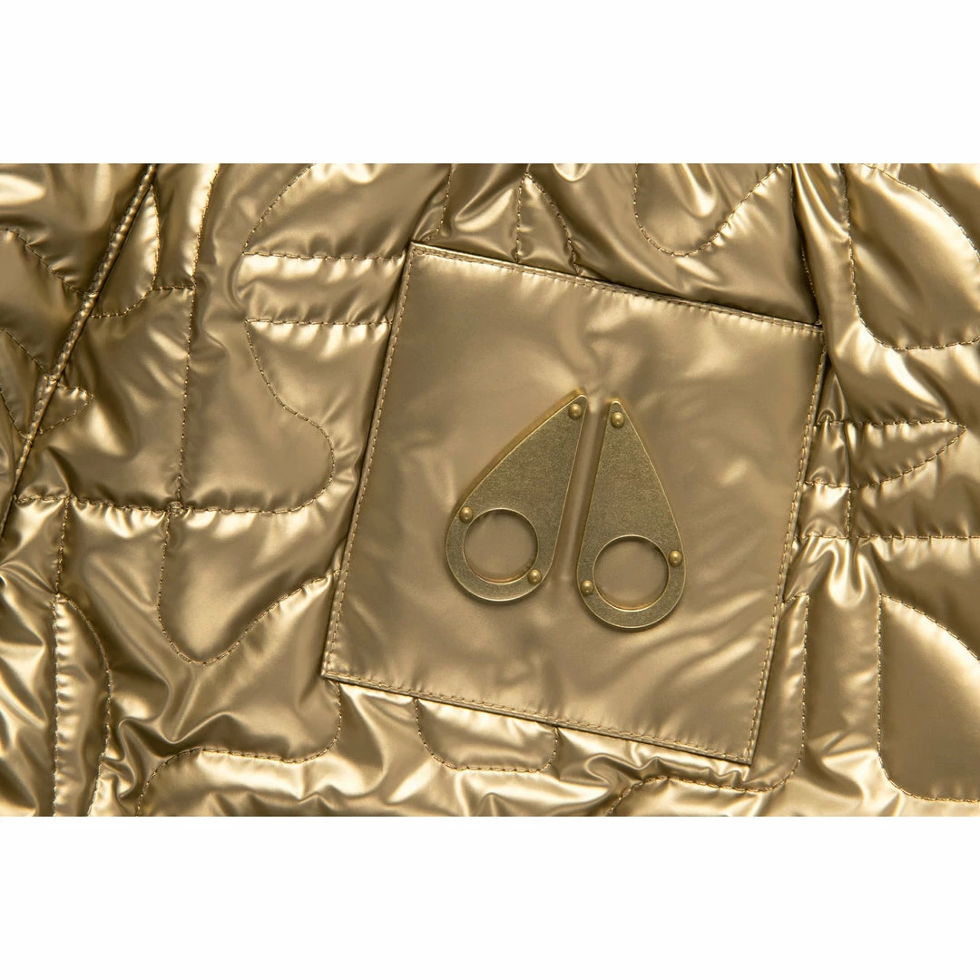Moose Knuckles X Telfar Quilted Bomber Pant. Featuring a flared leg with fur trimming, Elastic waist, Telfar logo zipper on front closure and pockets and our signature all-over monogram pattern quilted into shiny nylon puff.