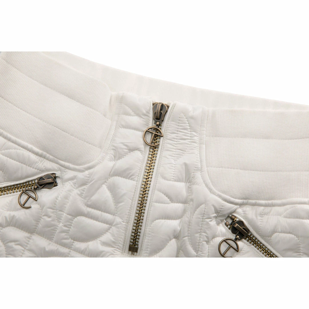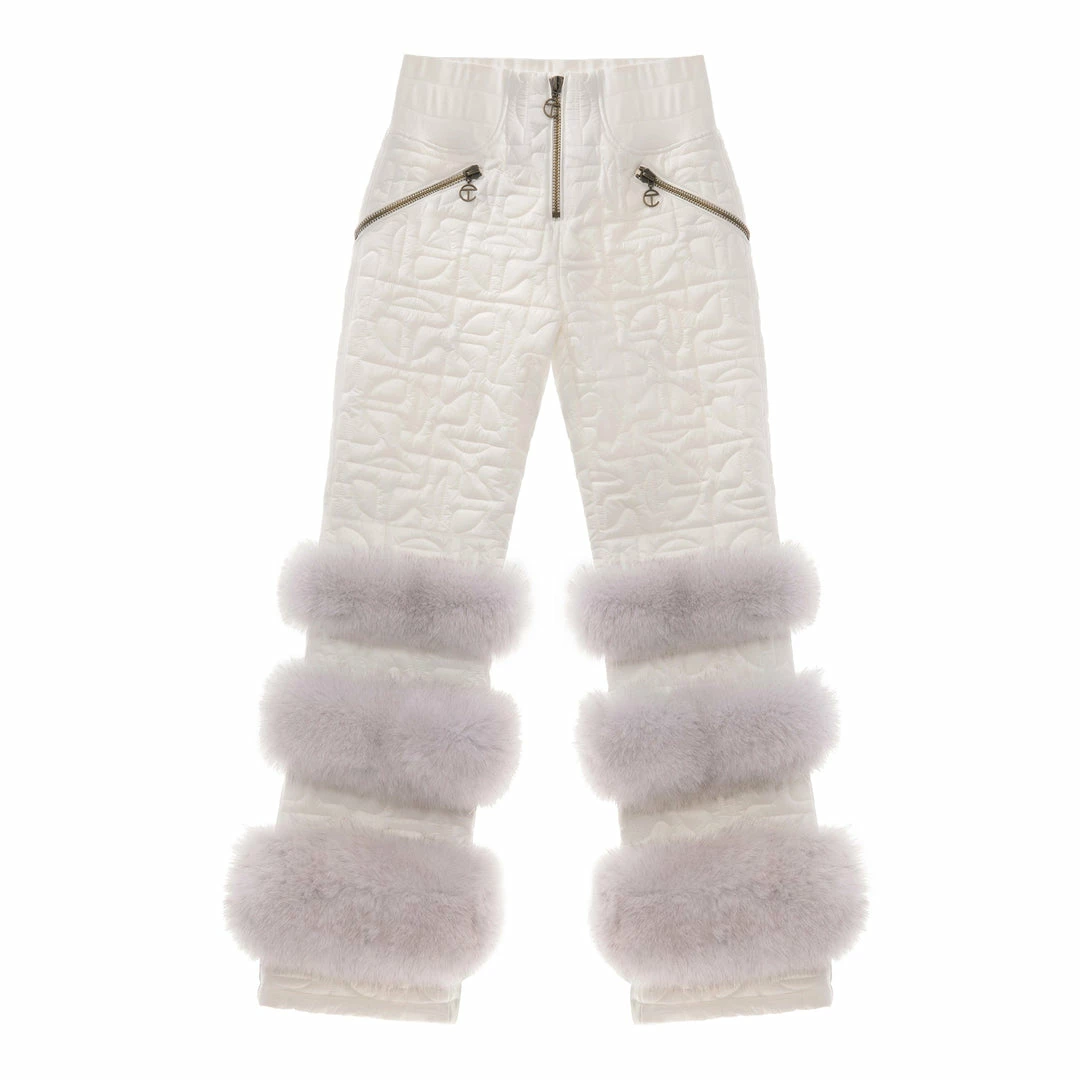 Moose Knuckles X Telfar Quilted Bomber Pant. Featuring a flared leg with fur trimming, Elastic waist, Telfar logo zipper on front closure and pockets and our signature all-over monogram pattern quilted into shiny nylon puff.