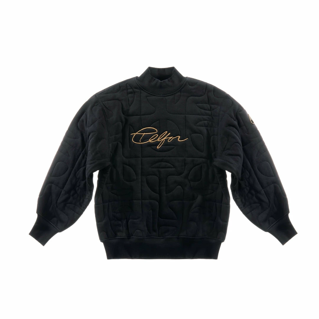 Moose Knuckles X Telfar Quilted Mockneck featuring an oversized fit, Telfar signature embroidered in gold on the chest and our signature all-over monogram pattern quilted into double-layered fleece to keep you super-warm.