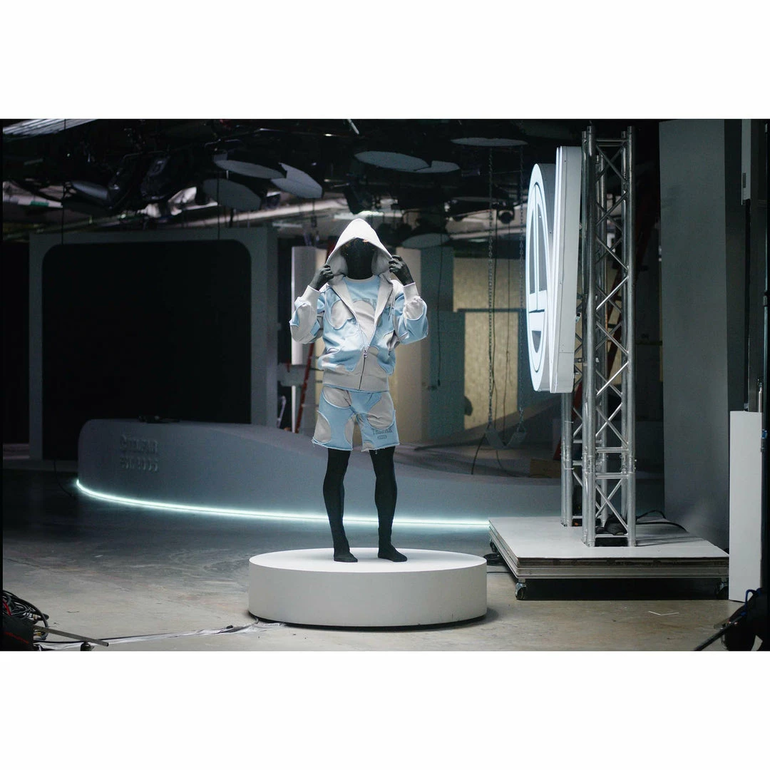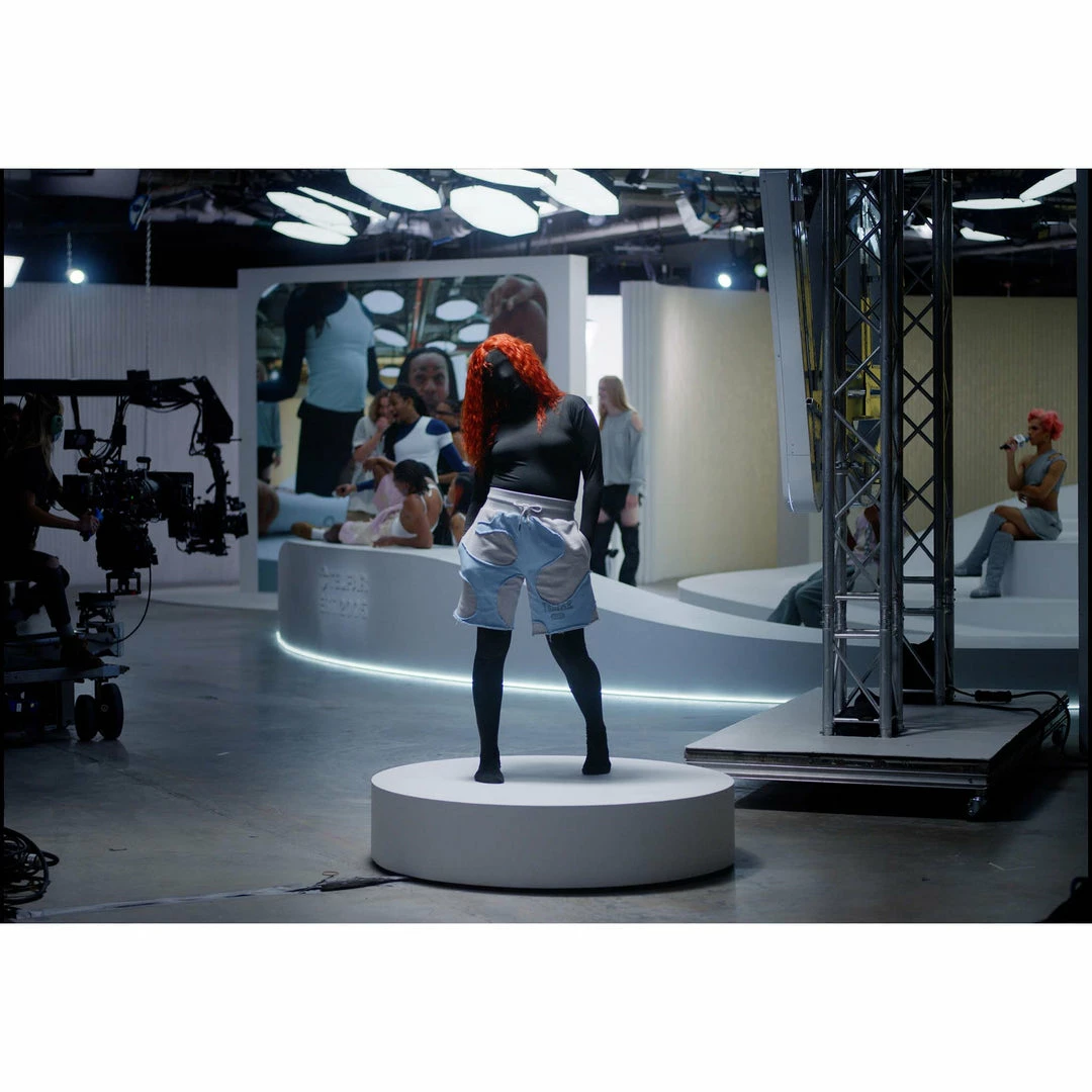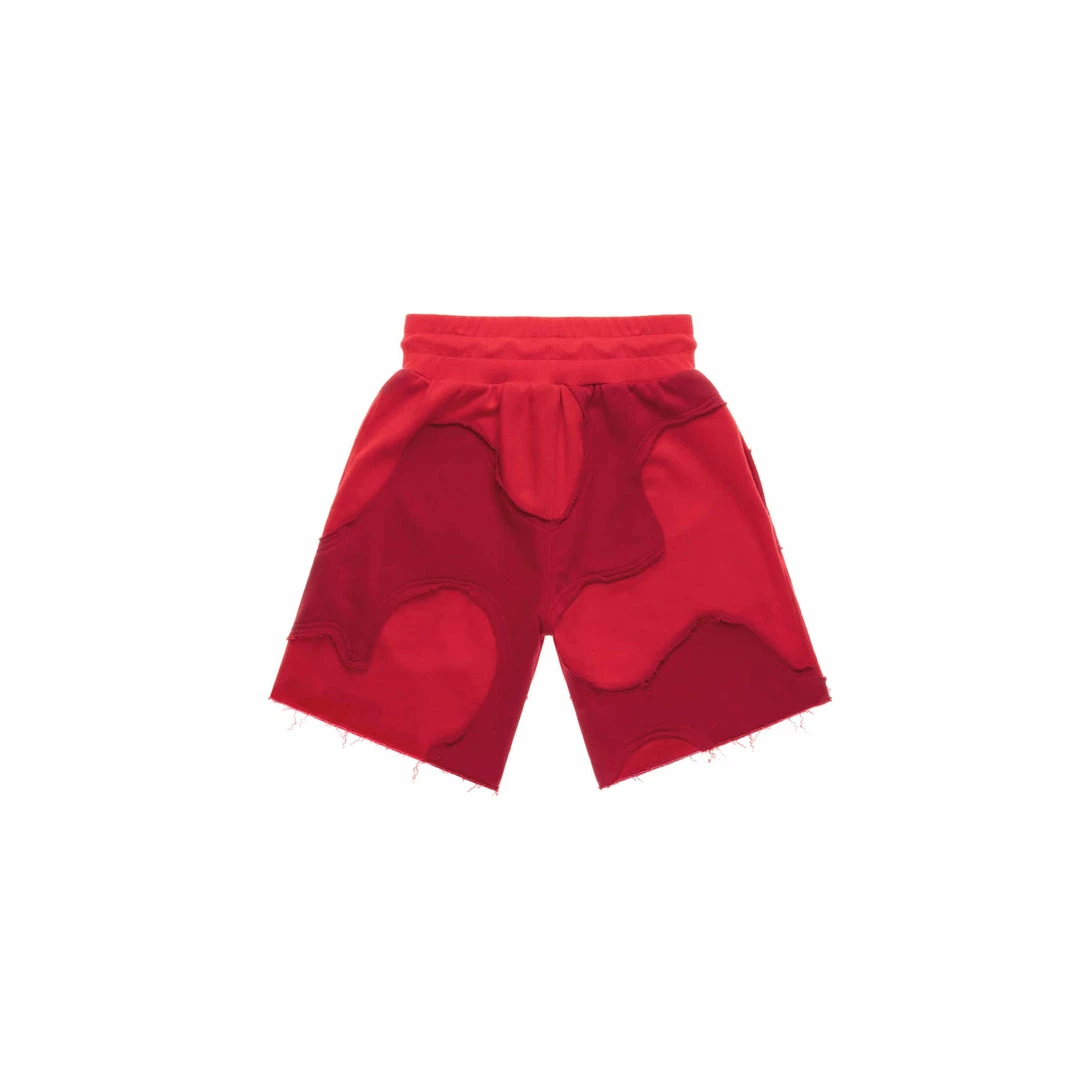 Boxy camo-sweatshorts constructed by layering two tones of sweatshirt fabric in a camouflage pattern. This cut-off sweatshort features a mid-thigh length, elasticated drawstring waistband, our cracked-ink TELFAR print on left thigh β obscured by raw edged camo cut-outs.