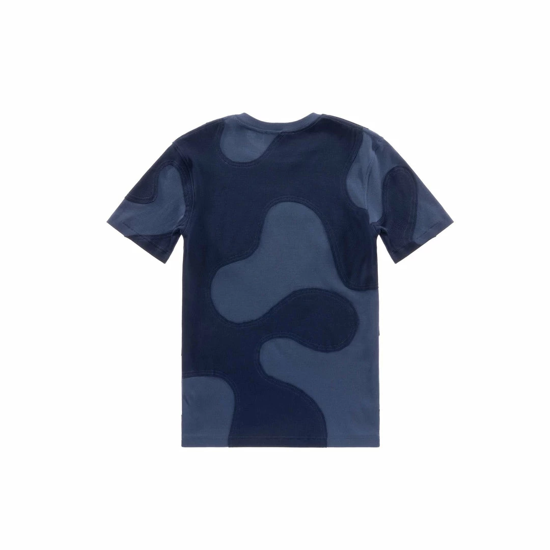 Boxy Camo-T constructed by layering two tones of heather rib knit in a camouflage pattern. Featuring TELFAR print in cracked ink on chest — obscured by raw edged camo cut-outs.