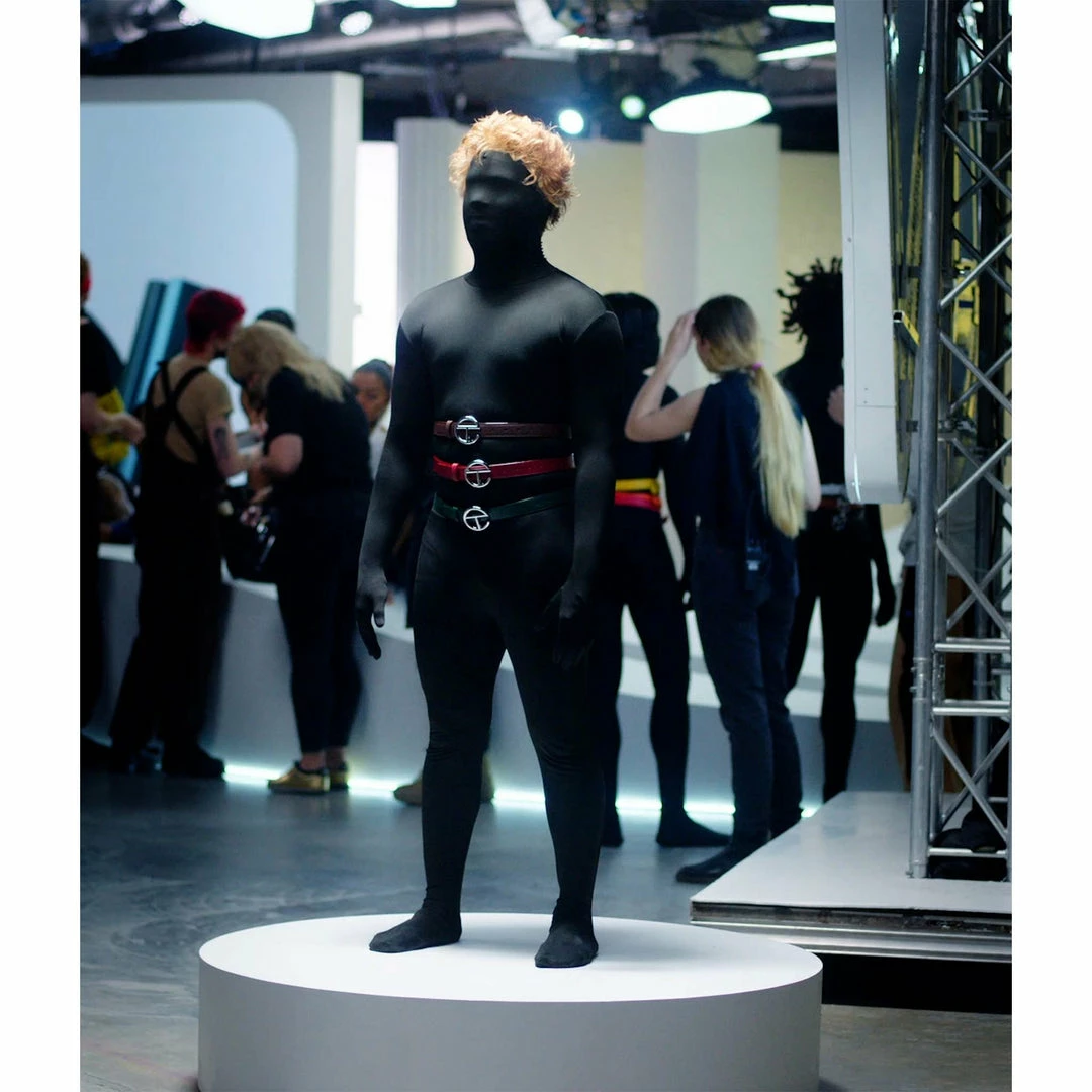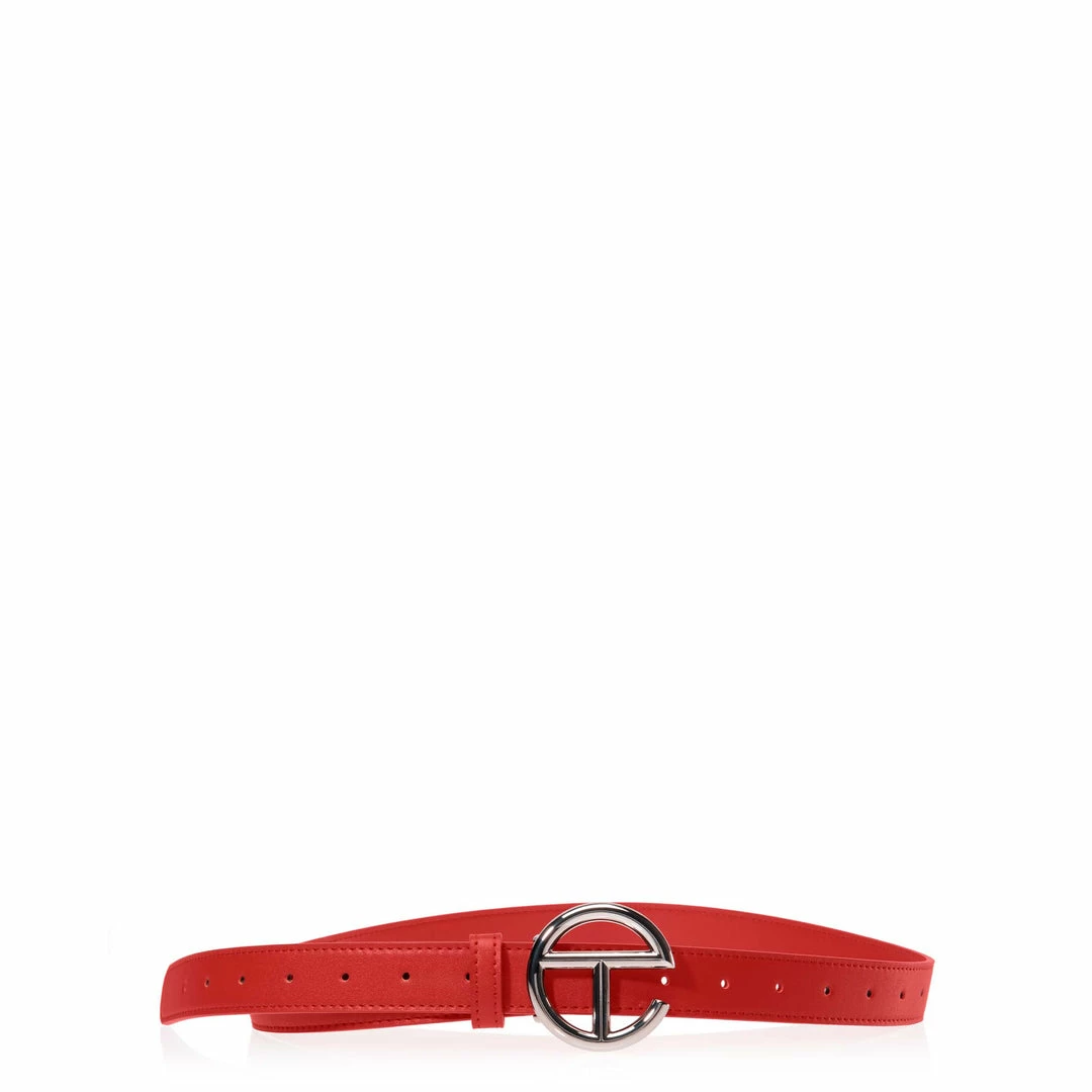 An Everyday belt for Everyone, inspired by our iconic Unisex Shopping Bag. Featuring a chrome-finish logo buckle, narrow faux leather strap, heavyweight topstitching and painted edges. Available in two sizes. Belt is protected by a 100% cotton drawstring bag and rigid outer box with silver foil logo.