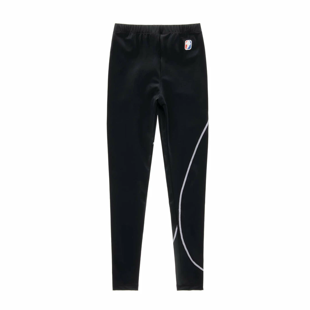 Full-length performance leggings made in stretch nylon for a snatched fit. Engineered for athletes and aesthetes. Unisex fit featuring contrast binding, coverstitching, and logo heat transfer.ย