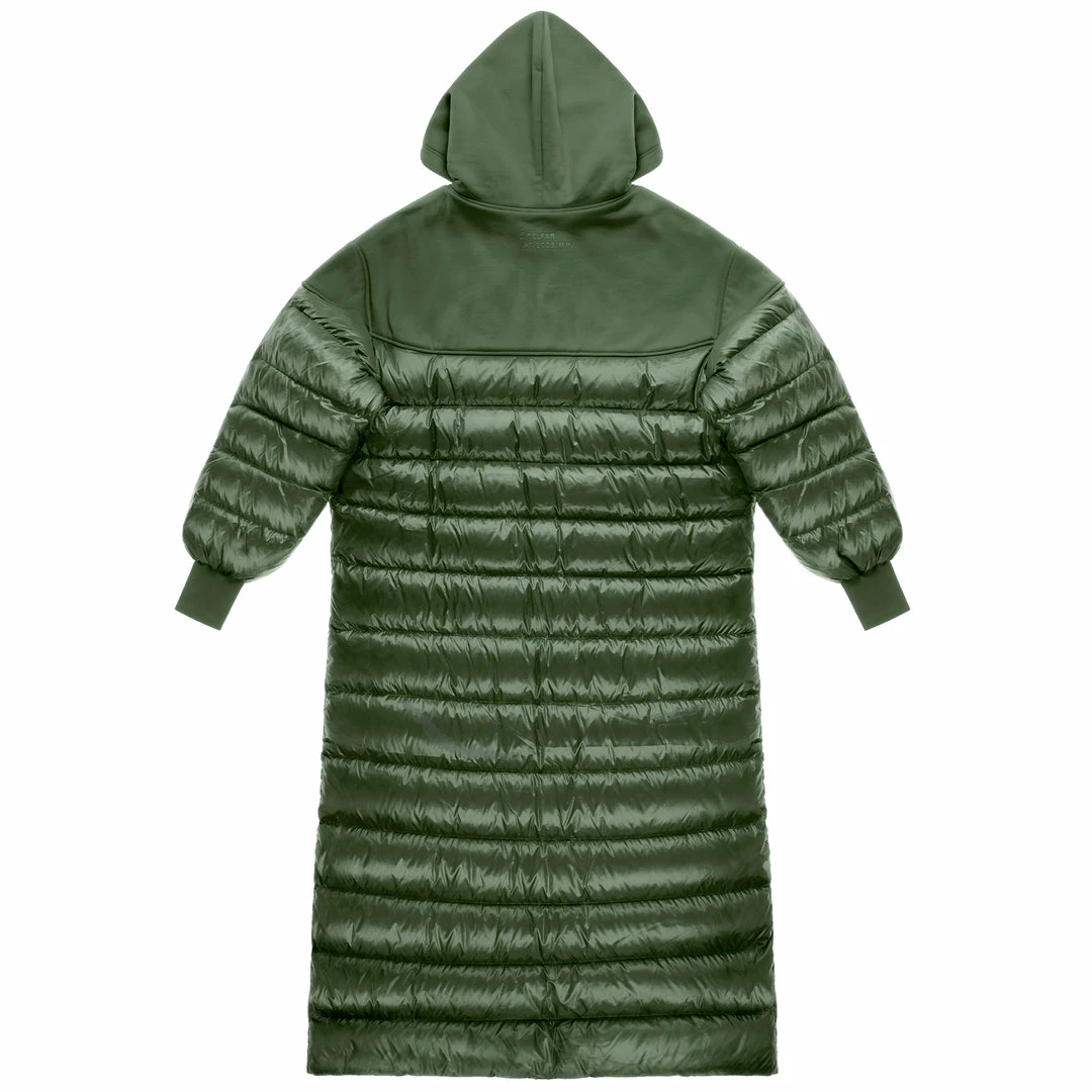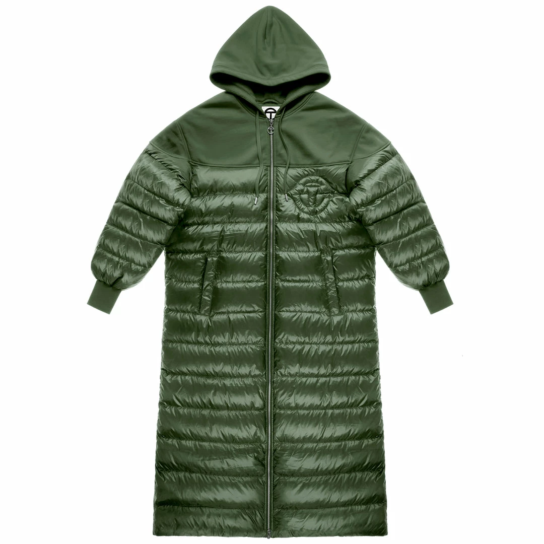 Our iconic Puff Hoodie now in a floor-length version, combining the two most ubiquitous winter garments into a single must-have item and featuring the iconic TELFAR logo engineered into bands of quilted nylon puff. Destined for uniform status and available in two lengths. 100% Unisex, the Puff Hoodie pairs with matching Puff Sweatpants