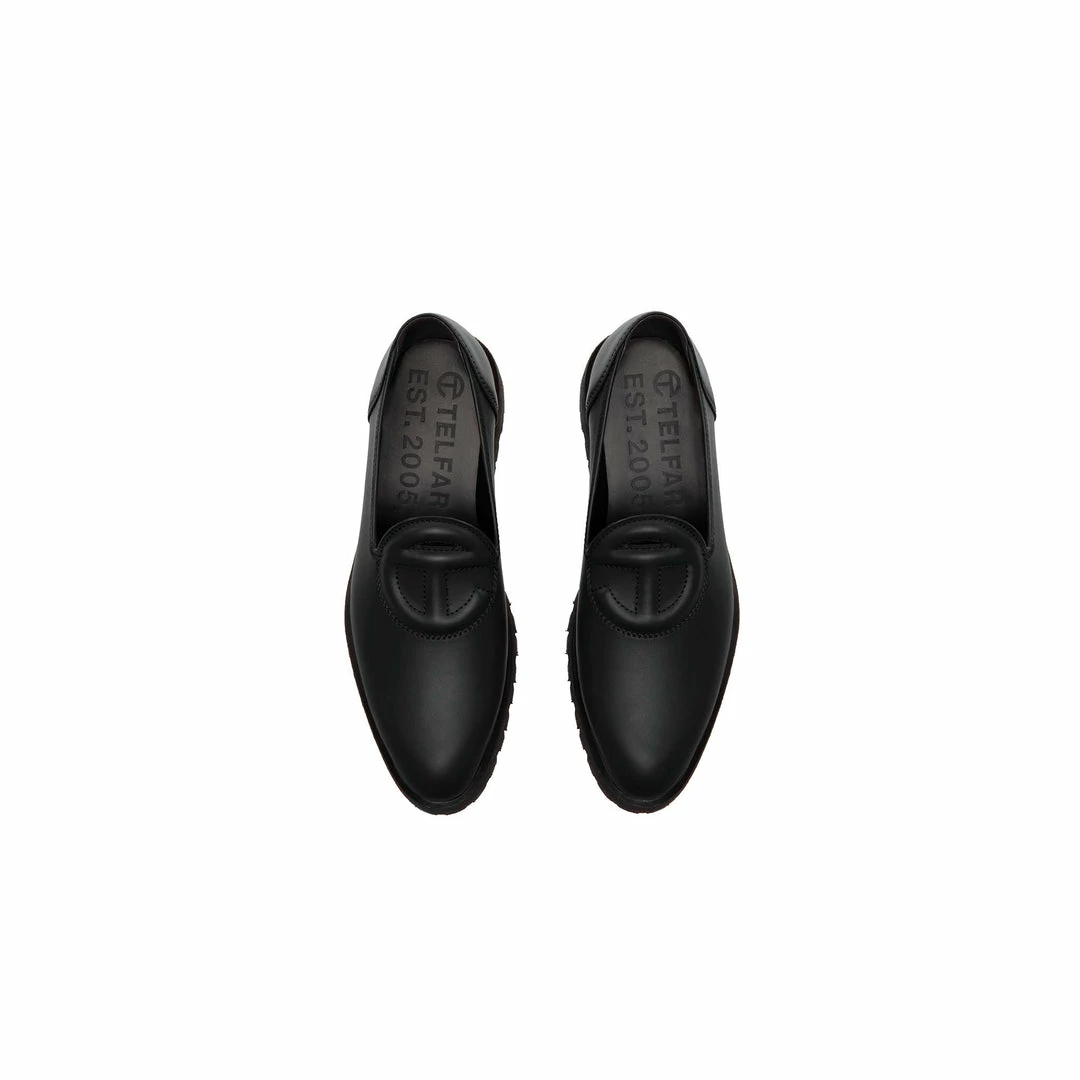 An Everyday shoe for Everyone, inspired by our iconic Unisex Shopping Bag. Featuring our signature embossed logo, pointed toe and sturdy Vibram rubber sole. Shoes are packaged in 100% cotton drawstring bags inside a rigid shoe box with silver foil logo.