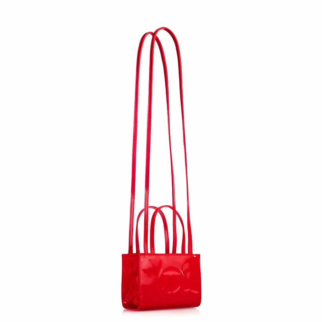 Deals 😀 TELFAR Small Red Patent Shopping Bag Patent Shoppers 🥰