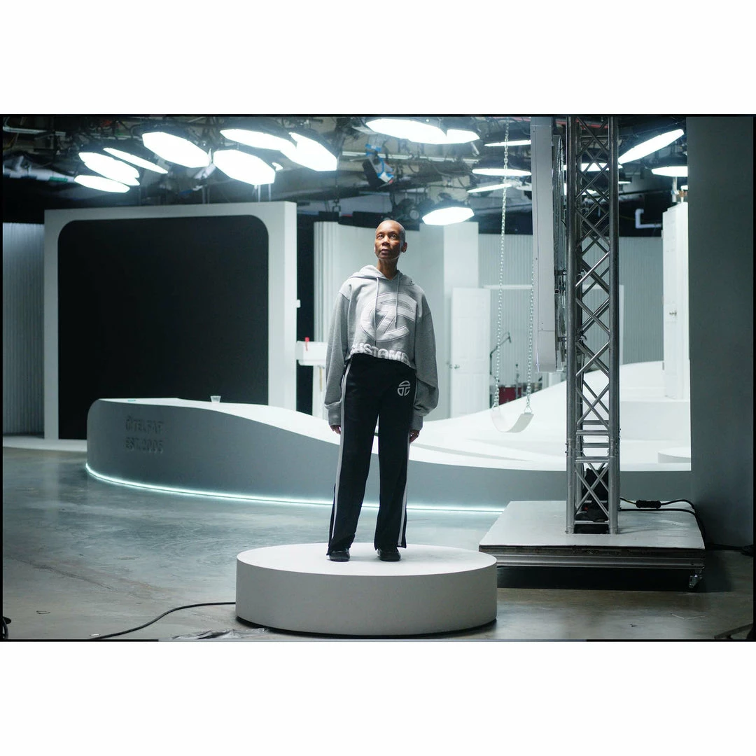 Classic Track pant featuring sculptural stripes, hidden zip pockets in front and back and athletic logo heat transfer on the hip.