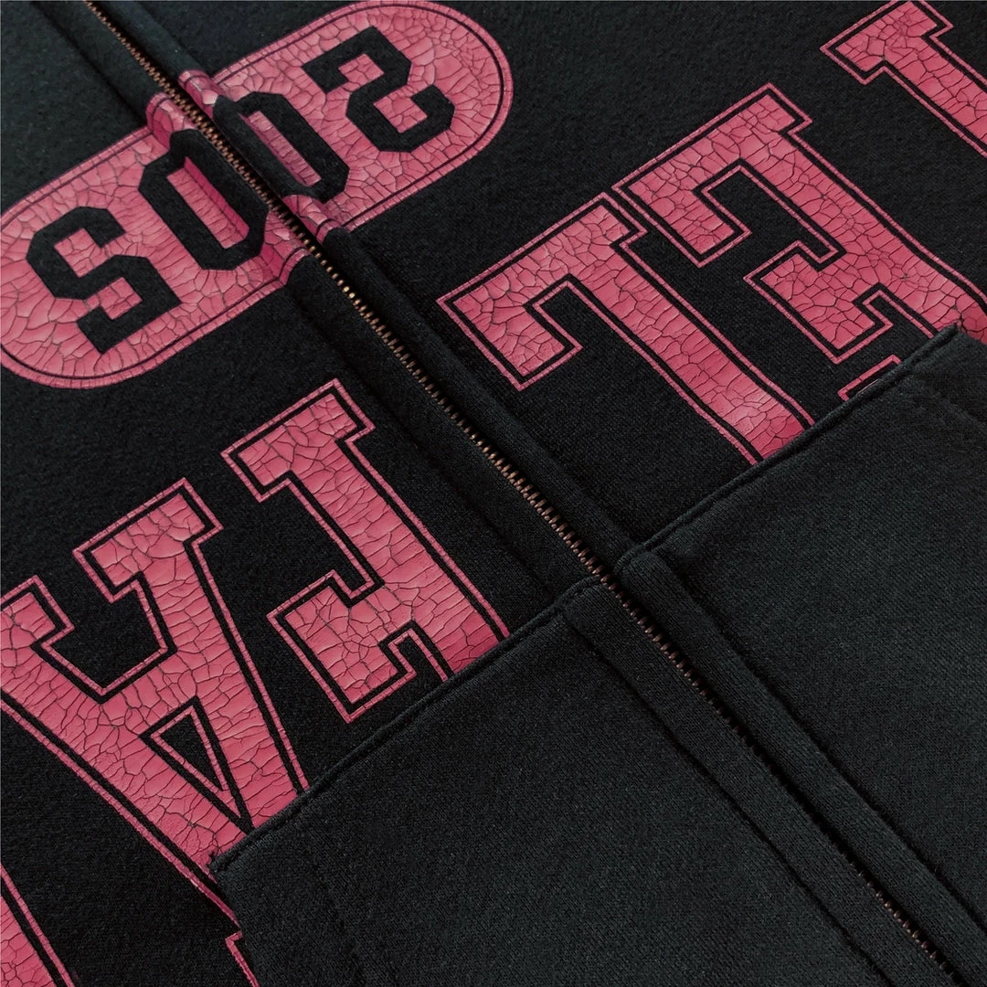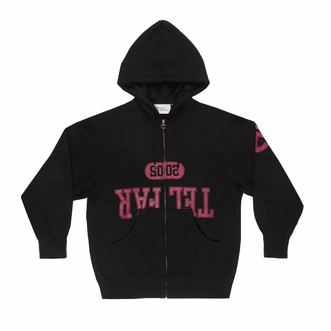 Our iconic collegiate fleece hoodie, featuring an oversized fit, extra-heavy fleece, tall ribbing, jersey-lined hood, Telfar logo zipper pull and our signature “cracked” textured collegiate print.