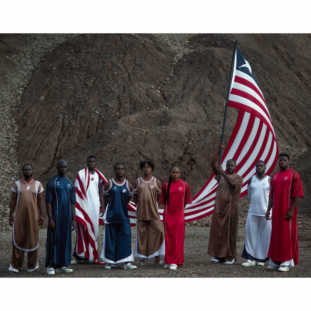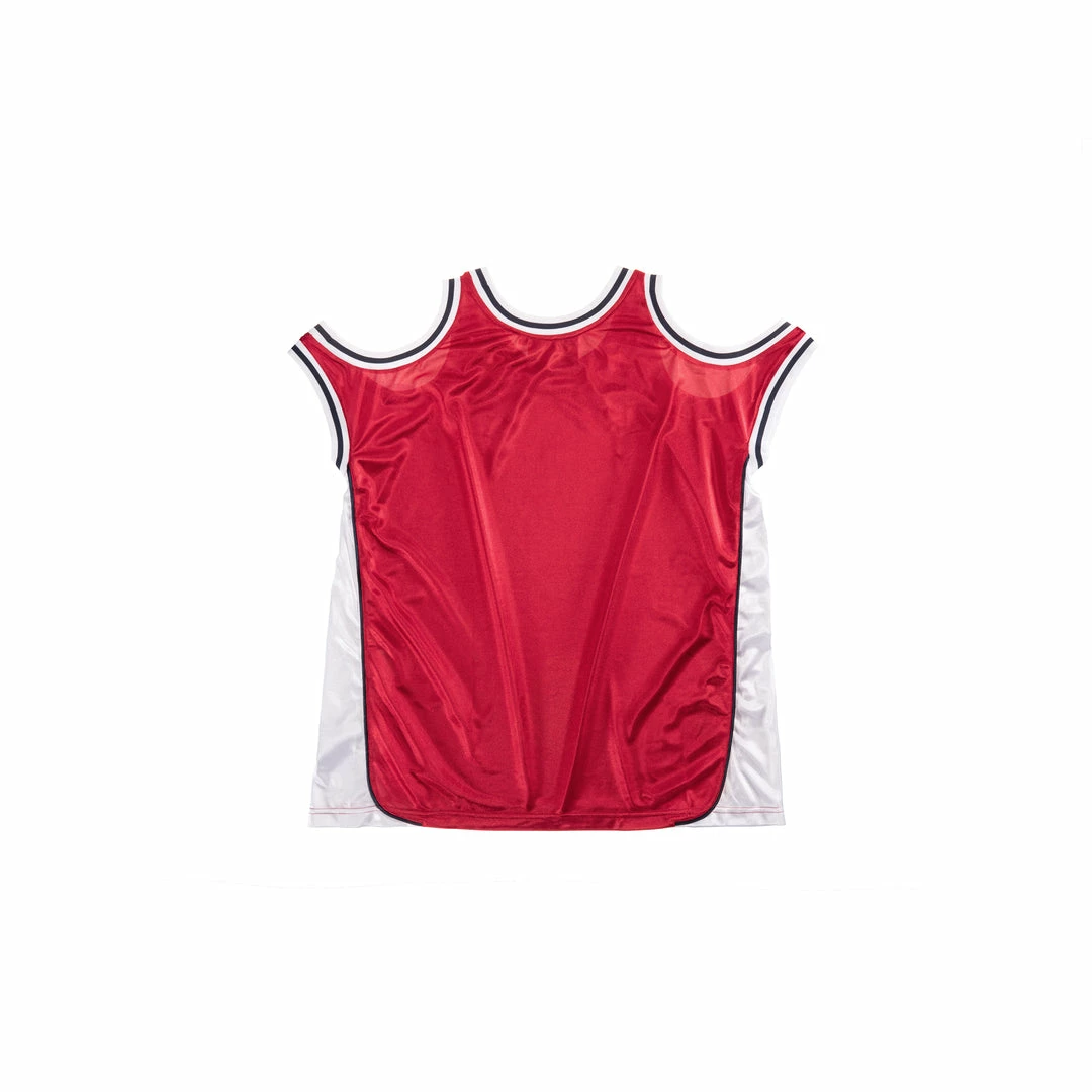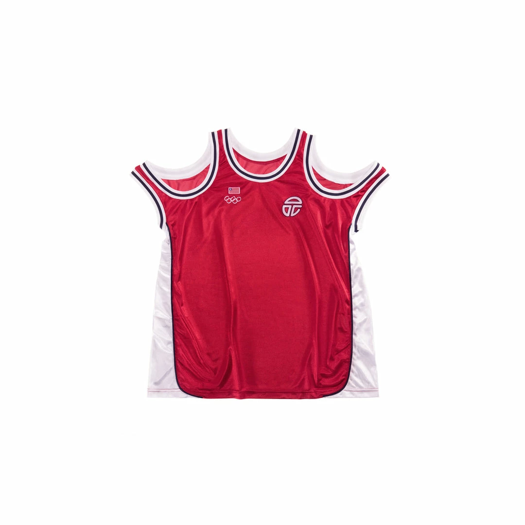 Triple basketball jersey in piped dazzle and striped ribbing, featuring embroidered TELFAR PERFORMANCE and AFRICA logos.