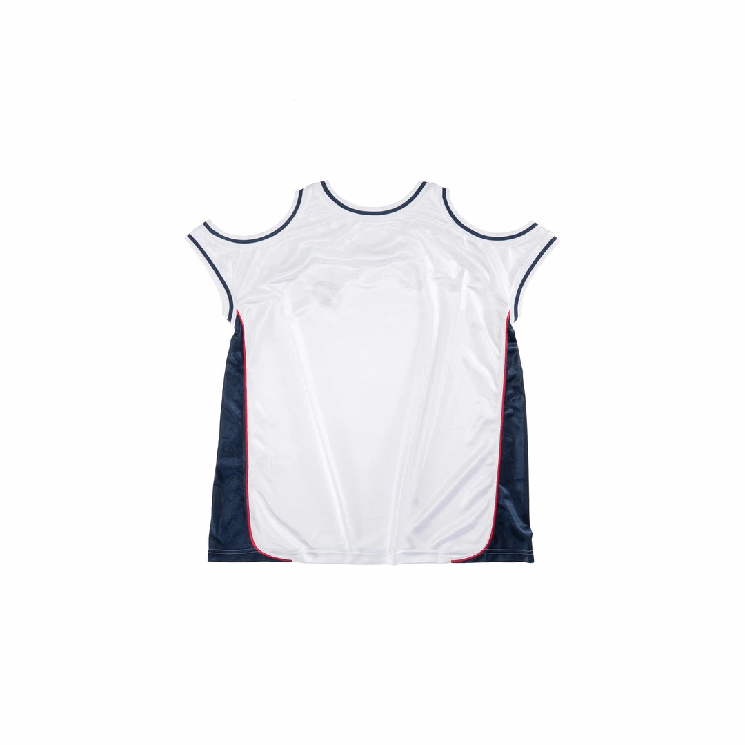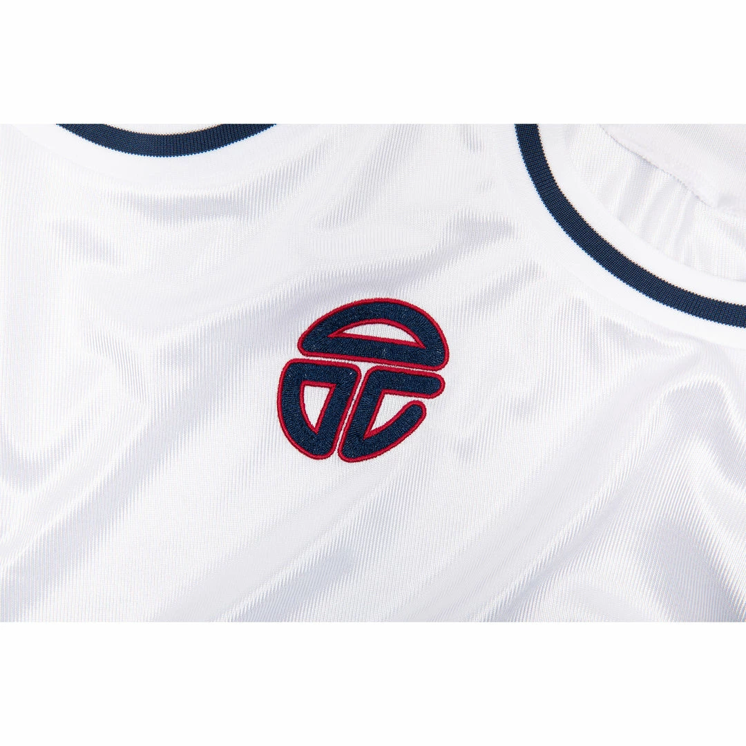 Triple basketball jersey in piped dazzle and striped ribbing, featuring embroidered TELFAR PERFORMANCE Β and AFRICA logos.Β