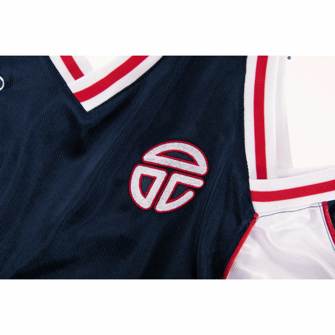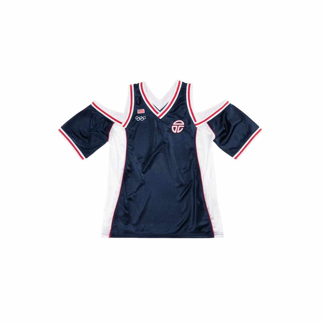 Triple soccer jersey in piped dazzle and striped ribbing, featuring embroidered TELFAR PERFORMANCE and AFRICA logos.
