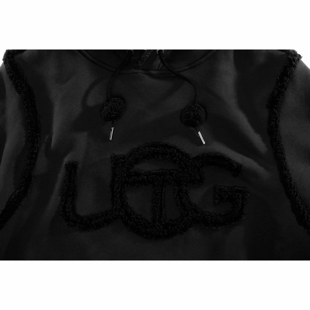 UGG x TELFAR pullover hoodie, featuring exclusive mash-up logo in sherpa applique, sherpa-lined kangaroo pocket and hood, exposed sherpa-seams and pom-pom drawstrings.