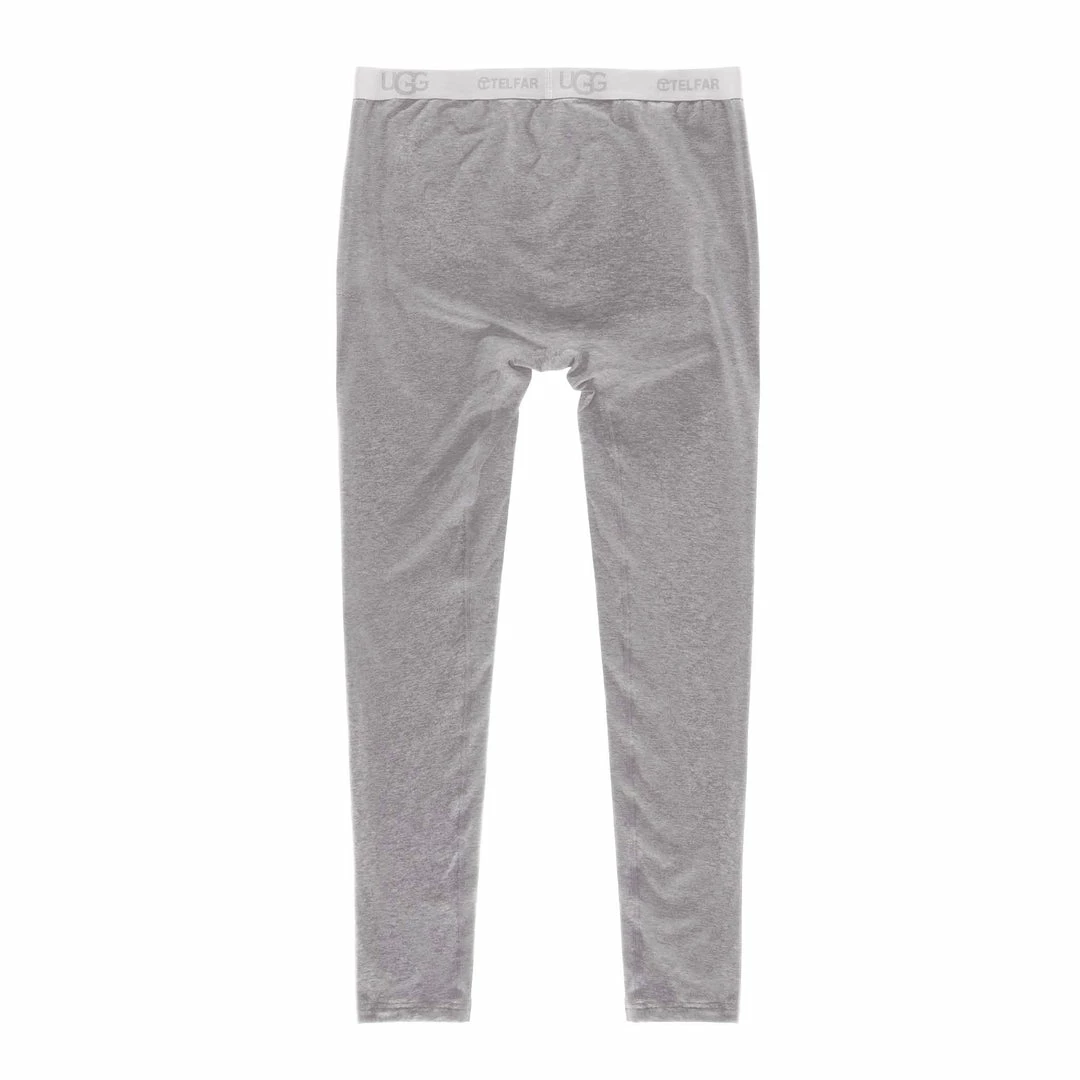 Super-soft unisex legging in heather grey, featuring UGG x TELFAR logo on the leg and custom branded jacquard elastic waistband.